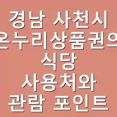 경남 사천시에서 온누리상품권을 활용하면 지역의 다양한 먹거리와 상품을 경험할 수 있는 기회를 제공합니다. 특히 삼천포 중앙시장은 현지인들의 삶을 느낄 수 있는 매력적인 장소입니다. 온누리상품권을 사용하여 지역 경제에 기여하고, 동시에 알찬 소비를 실천해 보시기 바랍니다.