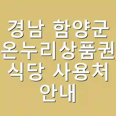 경남 함양군의 온누리상품권은 다양한 식당에서 사용 가능하며, 소비자에게는 경제적 혜택을 제공합니다. 구매 후에는 특정 식당에서 간편하게 결제할 수 있지만, 사용 규정을 반드시 확인해야 합니다. 올바른 활용을 통해 더욱 많은 이득을 누릴 수 있습니다.