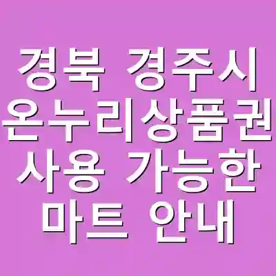 온누리상품권은 경북 경주시에서 여러 마트에서 사용할 수 있는 유용한 상품입니다. 이 상품권을 통해 지역 경제를 지원하고, 보다 실속 있는 쇼핑을 할 수 있습니다. 사용 시 주의할 점과 문제 해결 방안도 충분히 숙지하여, 더 많은 이점을 누리시길 바랍니다.