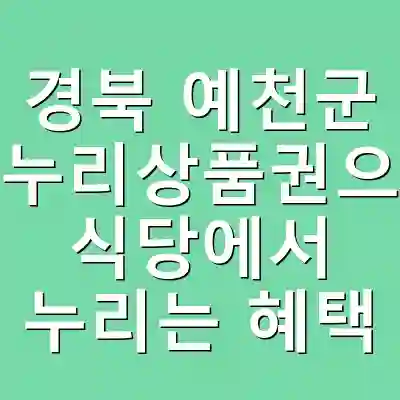 예천군의 온누리상품권은 지역 식당과 시장 방문 시 여러 가지 혜택을 누릴 수 있는 유용한 수단입니다. 이를 통해 경제적인 이득은 물론, 지역 경제 활성화에도 기여할 수 있습니다. 지역의 전통 음식을 저렴하게 즐길 수 있는 기회를 놓치지 마세요.