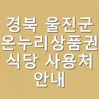 경북 울진군에서는 온누리상품권을 사용하여 지역 내 다양한 식당과 상점에서 결제가 가능합니다. 온누리상품권은 지역 경제를 지원하고, 소비자에게는 경제적인 혜택을 제공합니다. 특히 울진군의 식당들은 신선한 해산물 요리로 유명하여, 상품권을 이용한 외식이 더욱 매력적입니다. 이 글에서는 울진군 내 온누리상품권 사용처와 추천 식당을 소개합니다. 이 정보를 통해 울진군의 맛집을 탐방하고, 온누리상품권을 효과적으로 사용할 수 있는 방법을 이해할 수 있을 것입니다.