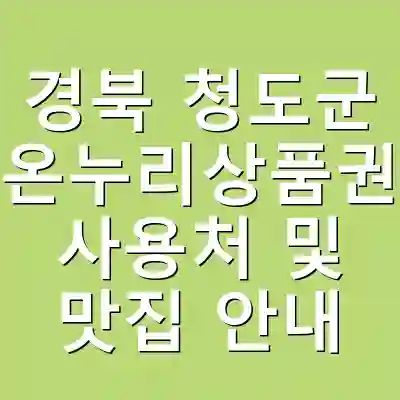경북 청도군에서 온누리상품권을 활용하면 더욱 경제적이고 즐거운 식도락 여행을 즐길 수 있습니다. 지역 특산품과 다양한 요리를 맛보며, 할인 혜택도 챙길 수 있는 기회를 놓치지 마세요.
