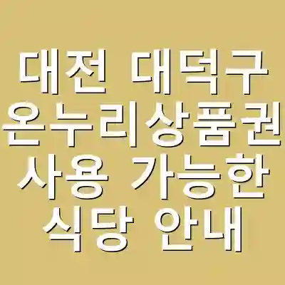 대전 대덕구에서 온누리상품권을 사용하여 식사를 즐길 수 있는 식당들을 찾는 것은 많은 이들에게 중요한 정보입니다. 특히 대덕구는 송촌동, 중리동, 법동 등 다양한 상권이 혼재되어 있어 그 사용처가 상이합니다. 온누리상품권은 지류, 모바일 등 다양한 형태로 존재하므로 각 매장에서의 결제 가능 여부를 꼭 확인해야 합니다. 이 글을 통해 대전 대덕구에서 온누리상품권을 사용할 수 있는 식당을 정확하게 파악하고, 다양한 상권의 특성에 따른 사용 가능성을 분석해 보겠습니다.