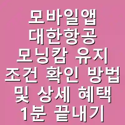 대한항공의 모닝캄은 항공사 마일리지를 통해 얻을 수 있는 다양한 혜택을 제공하는 프로그램입니다. 이 프로그램은 자주 비행하는 고객을 위한 특별한 서비스로, 승급 조건과 혜택을 이해하는 것이 중요합니다. 이 글에서는 모닝캄 유지 조건 확인 방법과 상세한 혜택에 대해 다루어보겠습니다. 이 글을 통해 대한항공 모닝캄의 혜택을 최대한 활용하는 방법에 대해 배울 수 있습니다.