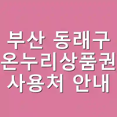 | 온누리상품권 사용처 | 부산 동래구 내 100개 이상의 마트 및 전통시장 | 소상공인 지원 및 지역 경제 활성화 |