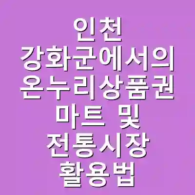 인천 강화군 내에서 온누리상품권을 활용하는 방법은 다양합니다. 전통시장과 마트 모두에서 사용할 수 있는 이 상품권은 소비자에게 경제적 혜택을 제공하며, 지역 경제 활성화에 기여합니다. 사용처와 구매 방법을 잘 이해하고 활용하면 현명한 소비가 가능합니다.