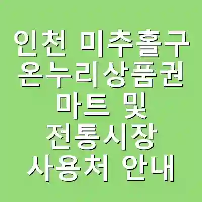 인천 미추홀구 내에서 온누리상품권을 사용할 수 있는 주요 전통시장으로는 ‘주안시장’, ‘문학시장’ 등이 있습니다. 또한, 일부 대형 마트에서도 온누리상품권을 취급하고 있어 소비자들이 보다 다양하게 선택할 수 있는 장점이 있습니다. 이 외에도 지역의 소규모 상점과 음식점에서도 온누리상품권을 사용할 수 있습니다.