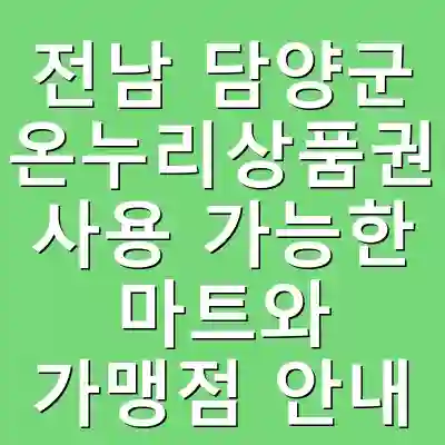 온누리상품권은 담양군 내 다양한 마트와 가맹점에서 사용할 수 있습니다. 소비자는 이를 통해 지역 소상공인을 지원하고, 지역 경제 활성화에 기여할 수 있습니다. 본 글은 온누리상품권 이용에 대한 유용한 정보를 제공하여 소비자들이 보다 편리하게 사용할 수 있도록 돕습니다.