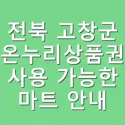 전북 고창군에서 온누리상품권을 사용할 수 있는 마트에 대한 정보는 지역 주민과 관광객 모두에게 유용합니다. 온누리상품권은 지역 경제 활성화를 위해 디자인된 상품권으로, 특정 매장에서 사용할 수 있습니다. 이 글에서는 고창군 내에서 온누리상품권을 사용할 수 있는 마트 리스트와 함께 이용 방법을 안내합니다. 이 정보를 통해 고창군 여행 시 쇼핑 계획을 세우는 데 많은 도움이 될 것입니다.