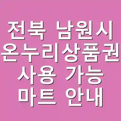전북 남원시는 온누리상품권을 통해 지역 경제를 활성화하고 있습니다. 이 상품권은 다양한 마트와 상점에서 사용이 가능해, 소비자들에게 큰 편의를 제공합니다. 본 글에서는 남원시에서 온누리상품권을 사용할 수 있는 마트에 대한 정보와 그 활용 방법을 상세히 소개합니다. 이 정보를 통해 독자들은 남원시 내에서 상품권을 보다 효율적으로 활용할 수 있는 방법을 알게 될 것입니다.