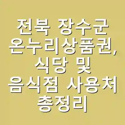 온누리상품권은 전북 장수군 내에서 사용 가능한 유용한 상품권으로, 다양한 음식점에서 활용할 수 있습니다. 이를 통해 소비자는 할인 혜택을 얻고, 지역 소상공인을 지원할 수 있습니다. 가맹점 등록과 사용 시 주의사항을 체크하여 올바르게 활용하는 것이 중요합니다.