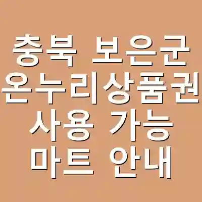 충북 보은군에서 온누리상품권을 사용 가능한 마트를 찾고 계신가요? 온누리상품권은 지역 경제 활성화와 함께 소상공인 지원을 위한 유용한 방법입니다. 보은군 내에서 온누리상품권을 사용할 수 있는 다양한 마트와 업소를 활용하면, 필요한 상품을 구매하며 지역 사회에도 기여할 수 있습니다. 이 글을 통해 보은군 내 온누리상품권 사용처에 대한 정보를 정확하게 안내해 드리겠습니다. 이 글을 통해 여러분은 보은군에서 온누리상품권으로 구매할 수 있는 마트를 쉽게 찾아낼 수 있습니다.